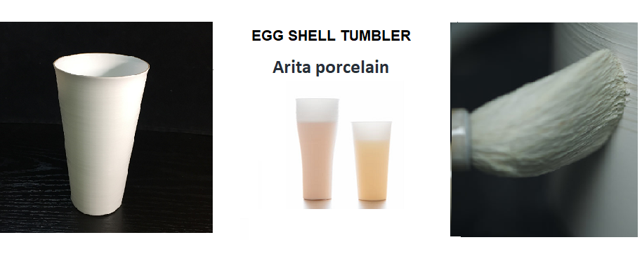 With these pure white, almost translucent, incredibly delicate cups, exquisite thinness and transparency are such that you can glimpse the color of the liquid they contain, and their very simple design emphasizes the whiteness of Arita-yaki porcelain. They are glazed on the inside only, while the outside is decorated with a little white clay, for an effect evoking the motifs on silk cocoons.