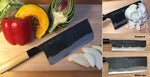 This Nakiri vegetable knife is wider than standard Nakiri knife. It is easy to control and comfortable to hold because of its weight and shape of handle. It works excellent for slicing, chopping and scooping vegetables. Your work can be done quicker with a wider blade. The Nakiri is a double bevel edged knife that is rectangle shape and has a thin blade. The sharpness of the blade is amazing, because of the hardness of Blue steel and hand forged by Japanese artisan. Crafted with a blue steel No.1 core, it has superior edge retention and ease of sharpening. Its traditional Japanese...