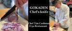 Received pictures from Chef Tim Cushman who is owner of O ya Japanese restaurant. Thank you chef Tim ! COMMENT FROM Chef Tim about "GOKADEN SUPER BLUE STEEL KIRITSUKE KNIFE-KUROUCHI FINISH" “This knife is a fantastic all purpose utility knife. I use it every day. The blade is very sharp and holds the edge for a long time. It feels perfectly balanced in your hand and has a nice light weight. For my purposes, I wouldn’t change a thing about this knife.” -James Beard Award Winning Chef Tim Cushman-Restaurants: o ya in Boston, NYC, Mexico City, Hojoko, Ms. Clucks Deluxe, gogo...
